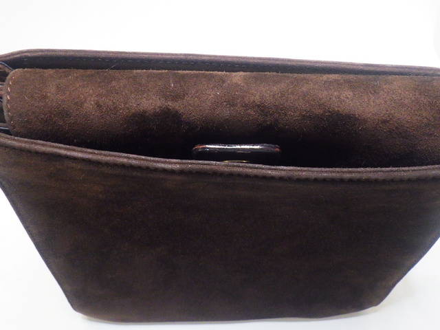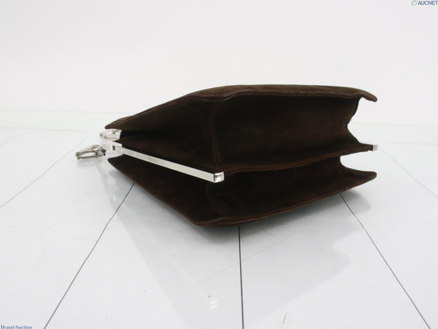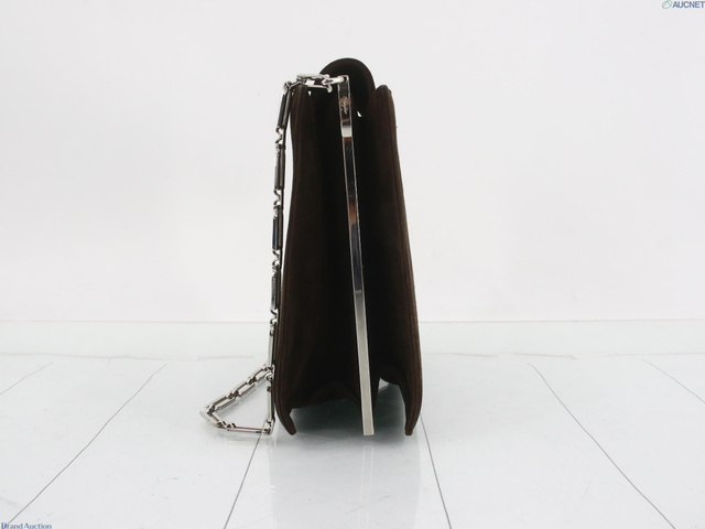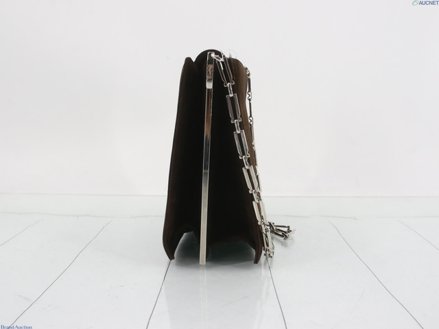 チェーンショルダーバッグ 茶 ベロア