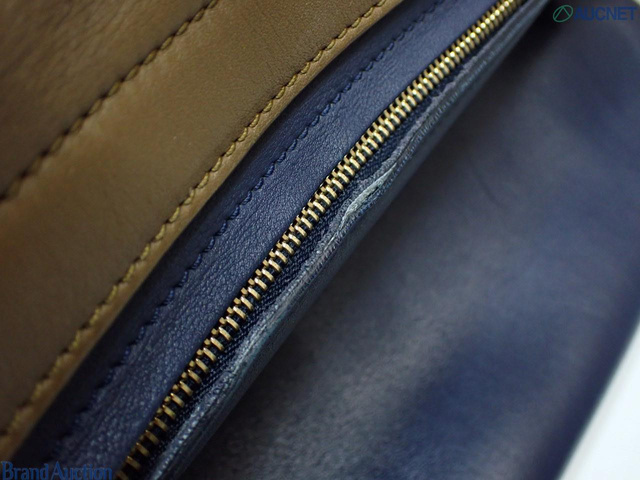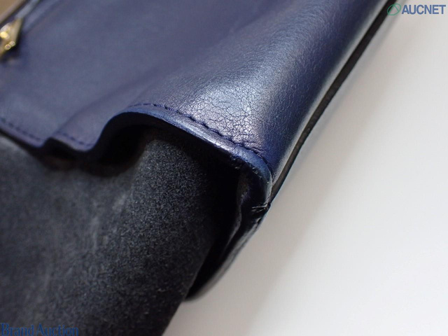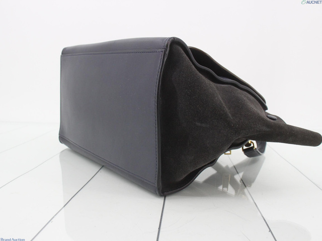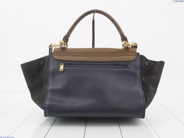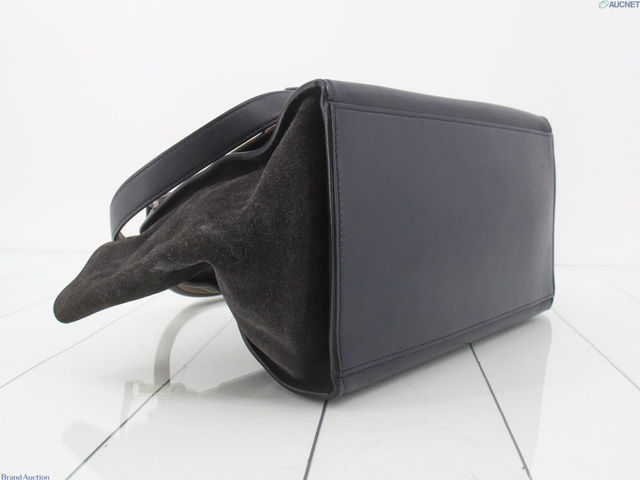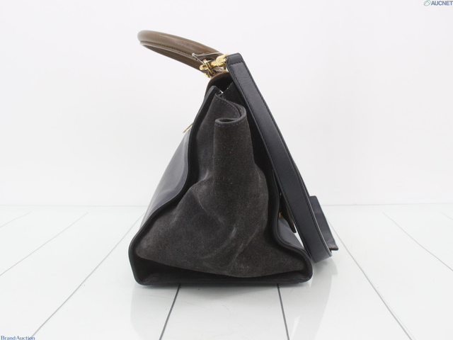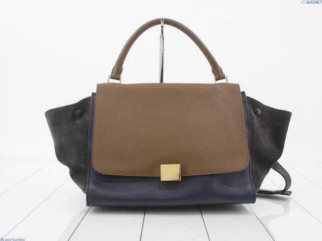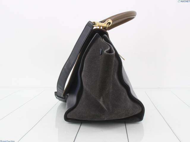 トラペーズミディアム 2WAYバッグ 茶 ネイビー レザー スエード