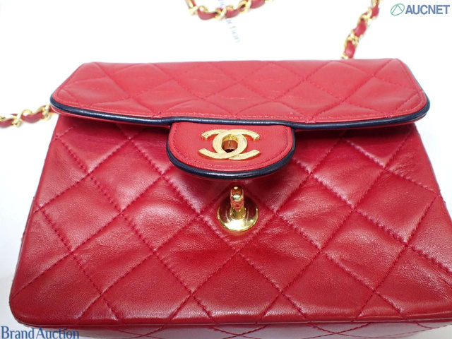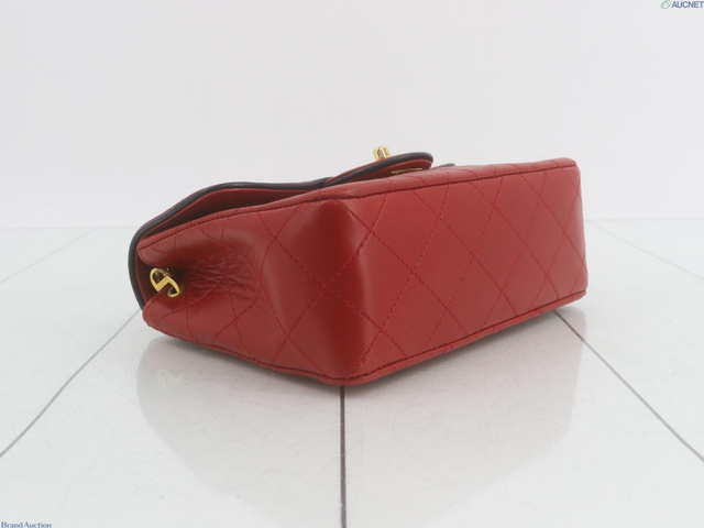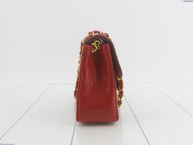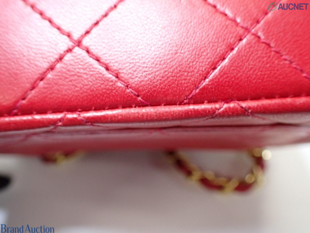 ラムスキン マトラッセ チェーンショルダーバッグ 赤 1番台