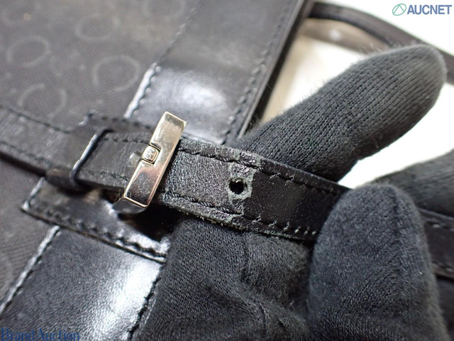 キャンバス×レザー Cマカダム トートバッグ ブラック
