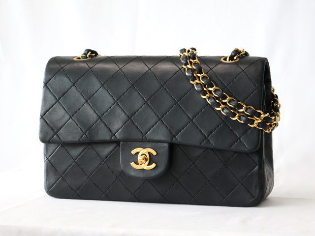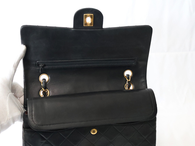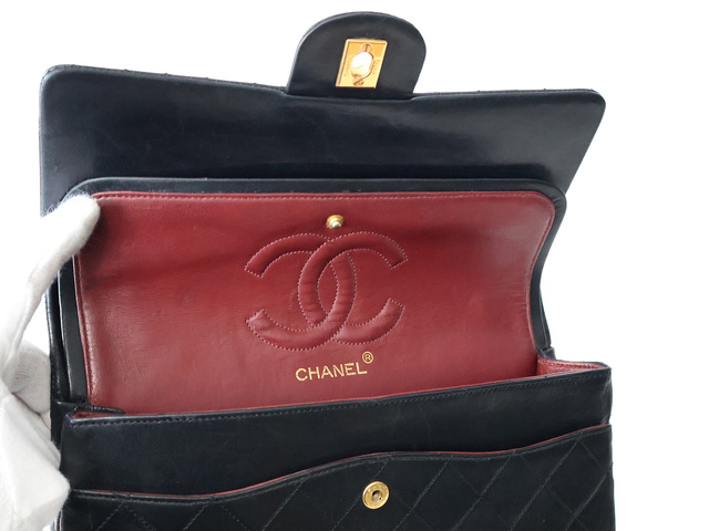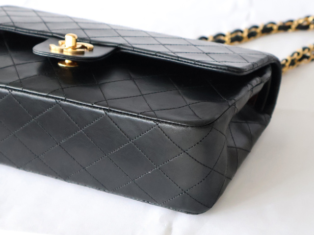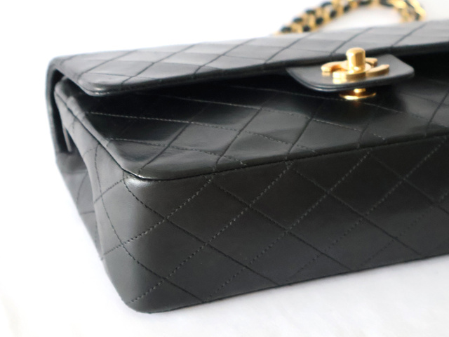 マトラッセ 25 ラムスキン Wフラップ Wチェーンショルダー ブラック
