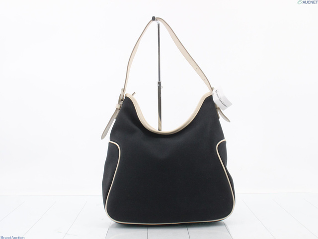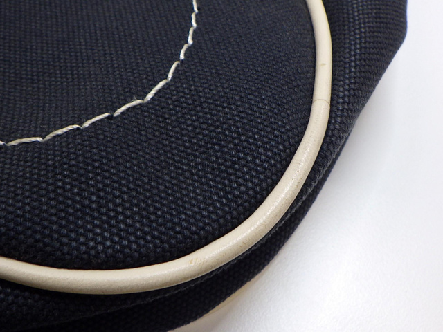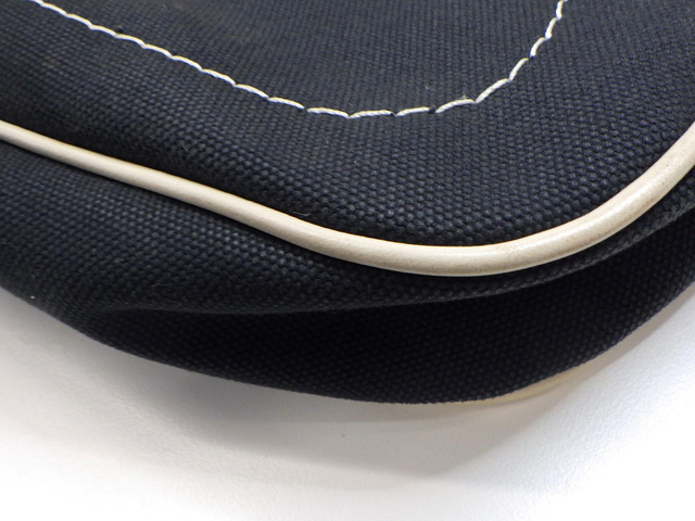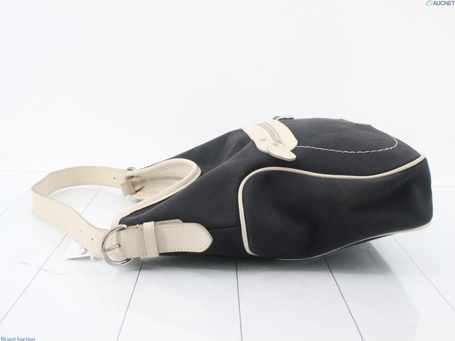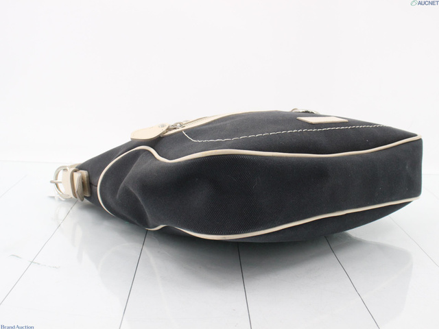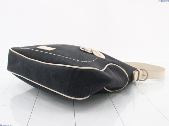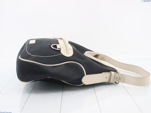 キャンバス×レザー ショルダーバッグ ネイビー アイボリー