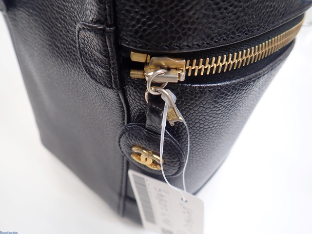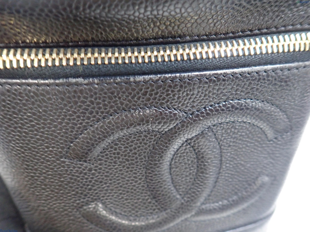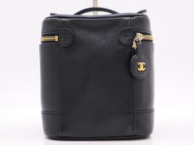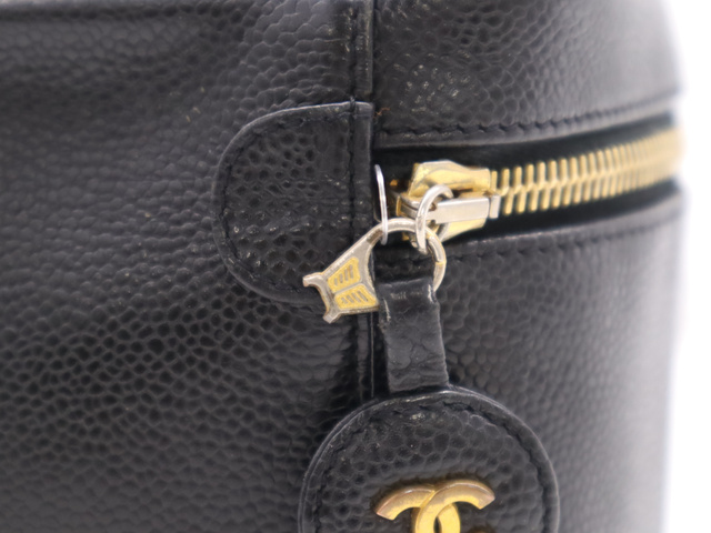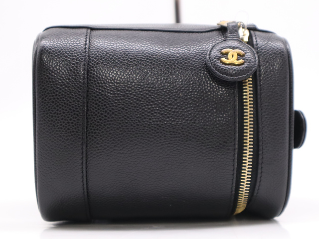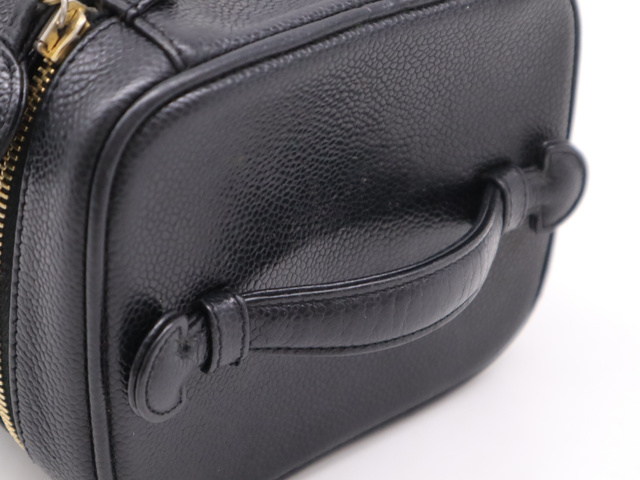 キャビアスキン バニティバッグ ブラック GD金具