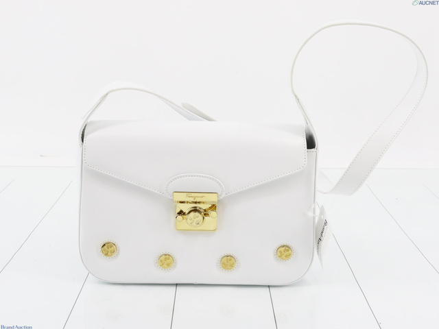 カーフレザー スタッズ ショルダーバッグ ホワイト