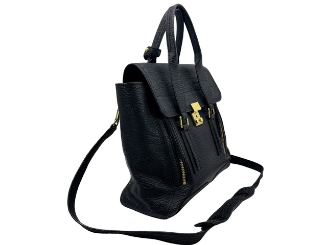 パシュリ 2WAYハンドバッグ レザー ブラック/ゴールド金具