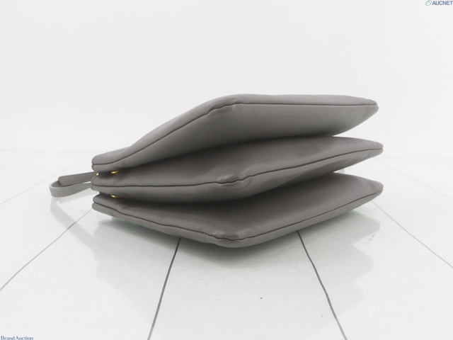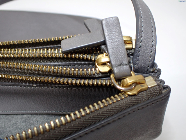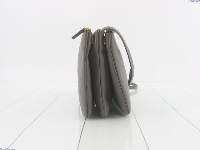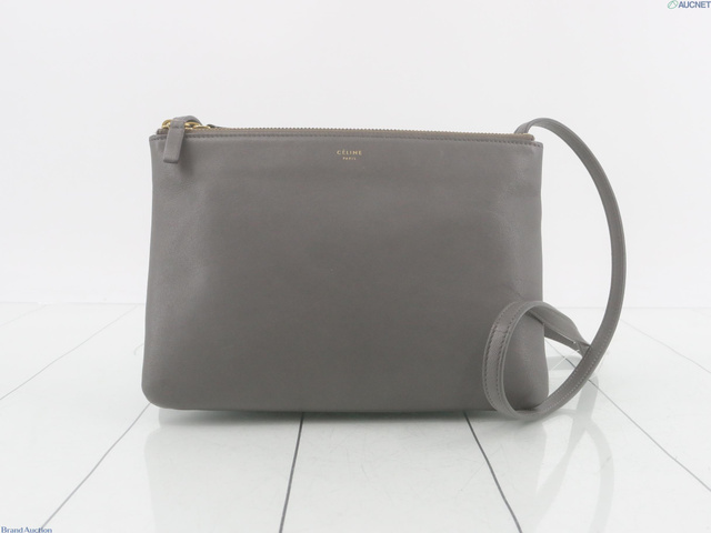 セリーヌ トリオ レザー ショルダーバッグ グレー