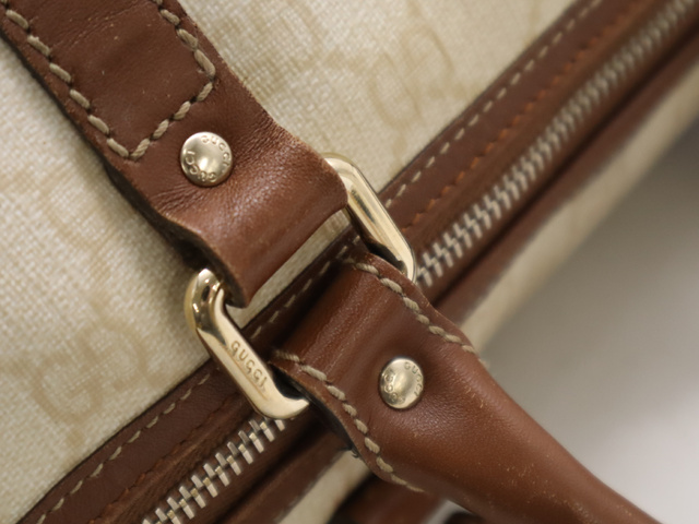 グッチシマミニボストン ハンドバッグ アイボリー ブラウン