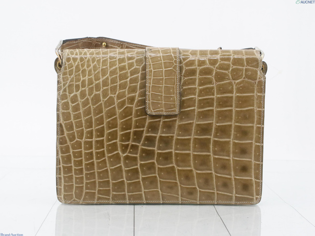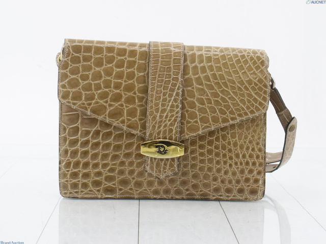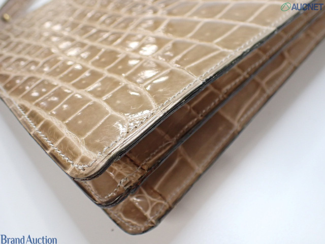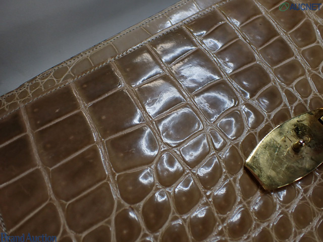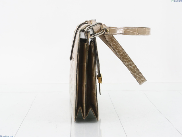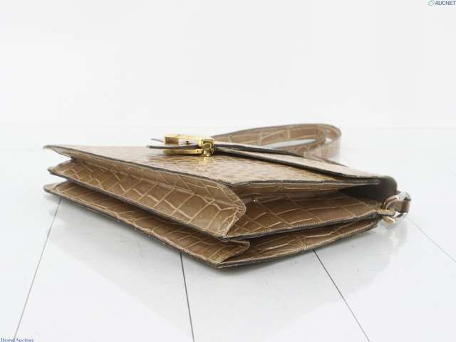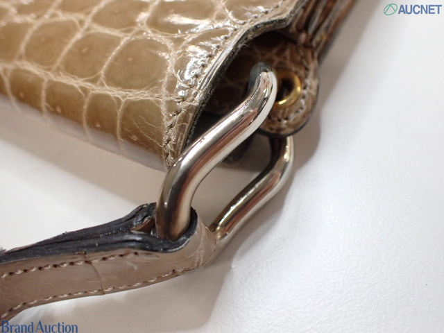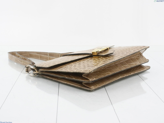 ワンショルダーバッグ ベージュ クロコ ロゴ金具
