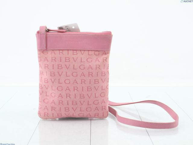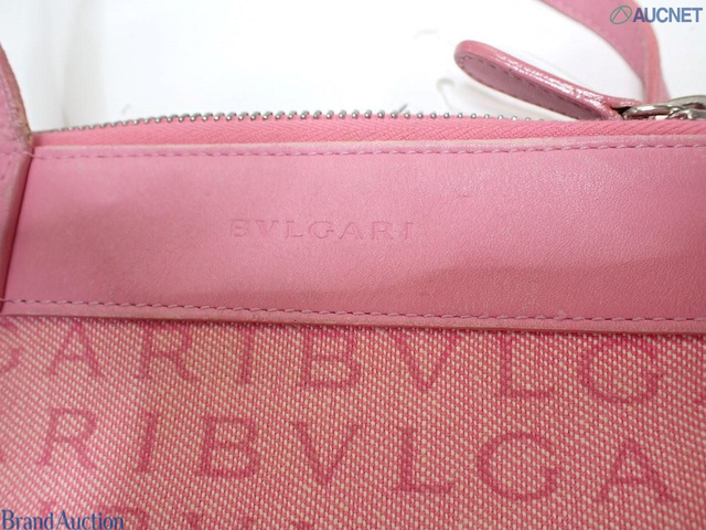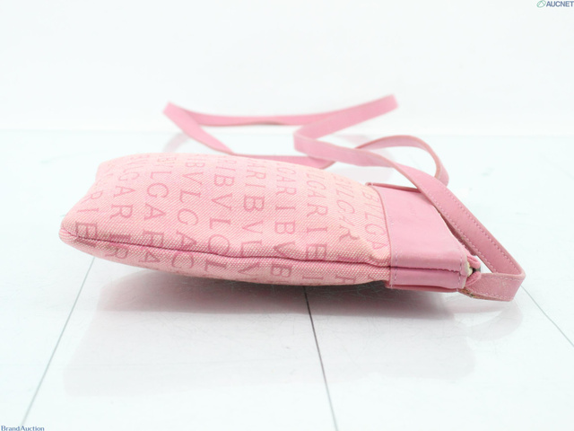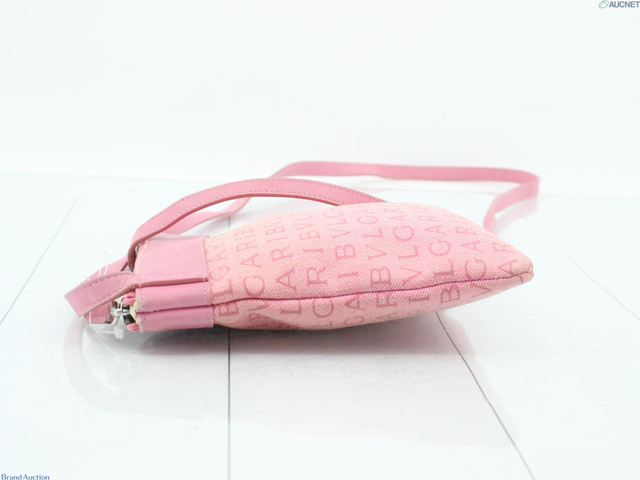 ロゴマニア ショルダー ピンク キャンバス レザー