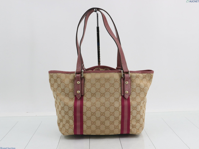 グッチ キャンバス トートバッグ シェリーラインピンク 137396