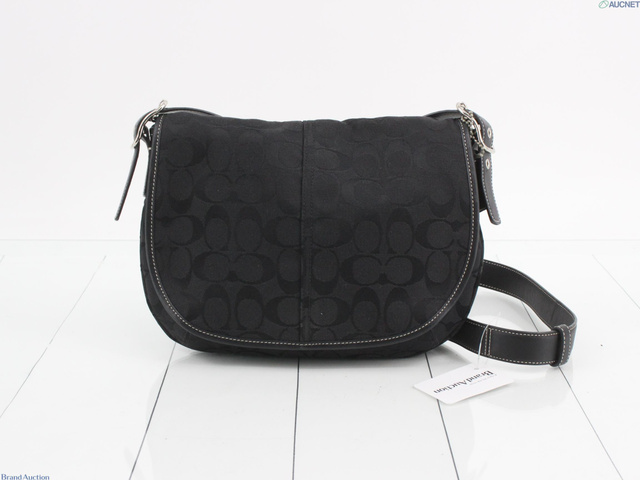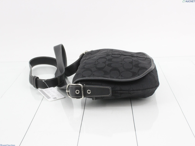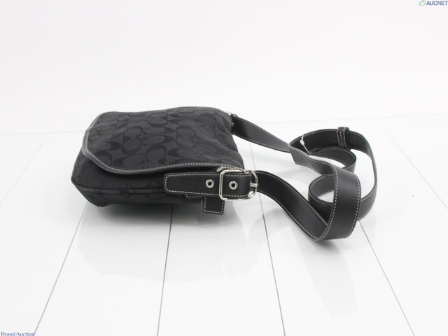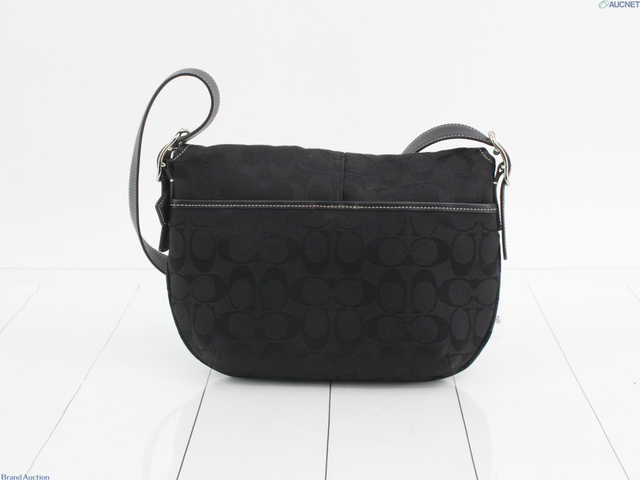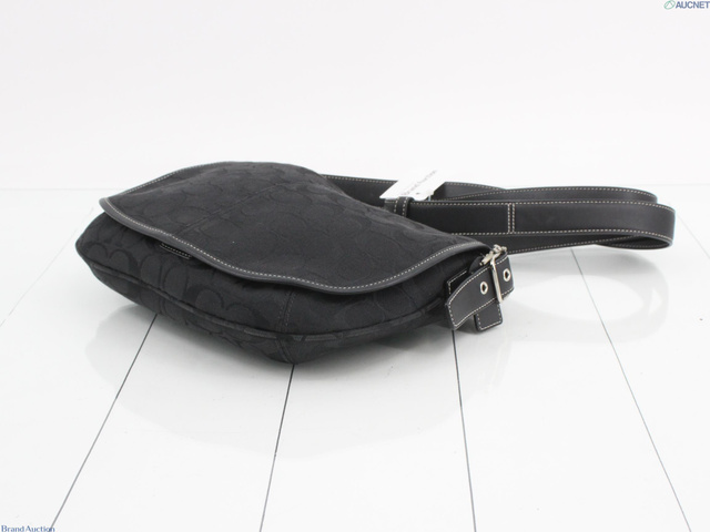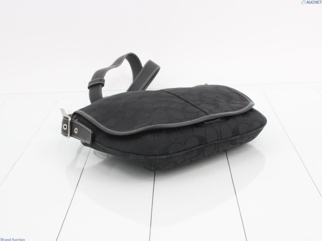 シグネチャー ショルダーバッグ フラップ式 キャンバス レザー ブラック