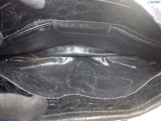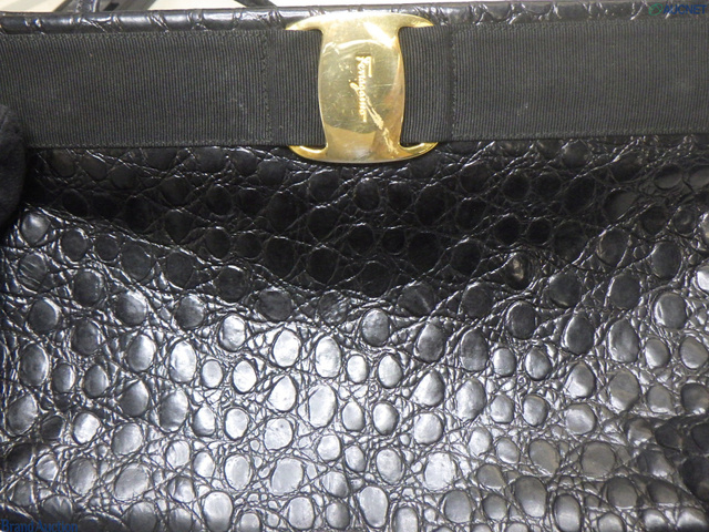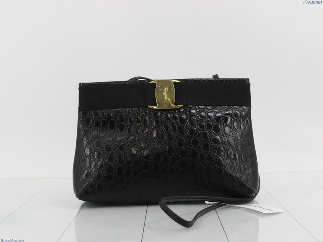 ヴァラリボン ショルダーバッグ 黒 レザー クロコ型