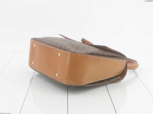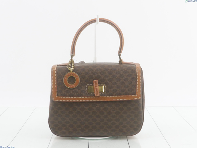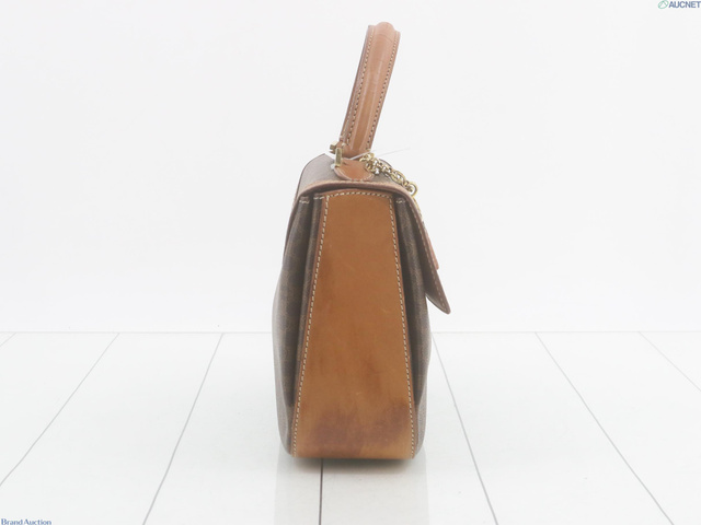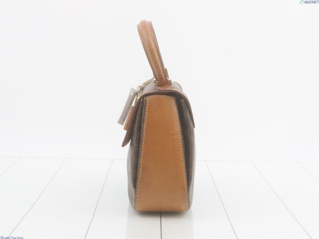 PVC×レザーマカダム ハンドバッグ ブラウン