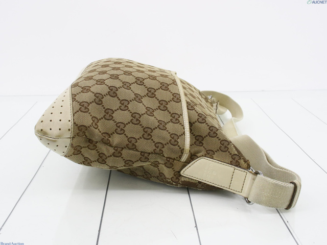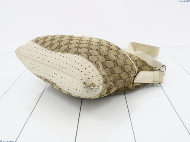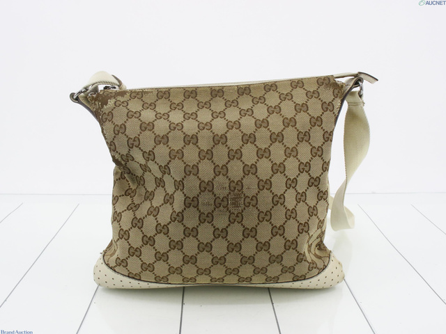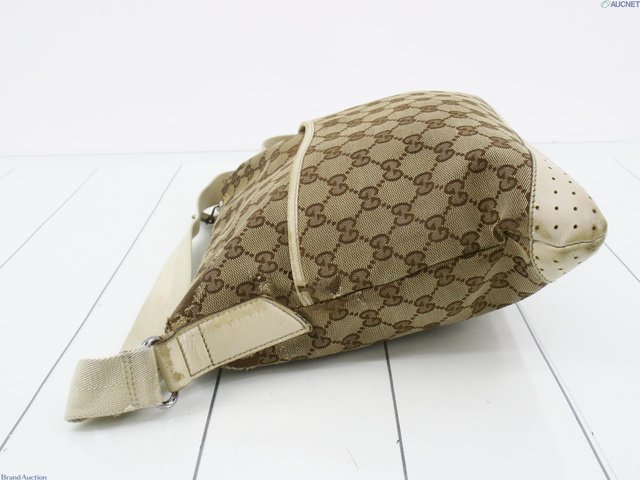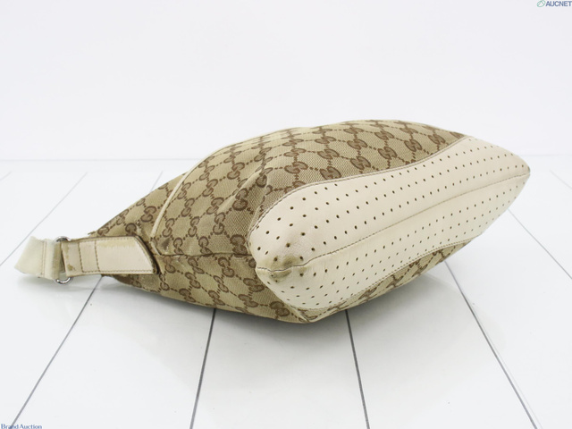GGキャンバスショルダーバッグ キャンバス レザー ベージュ アイボリー