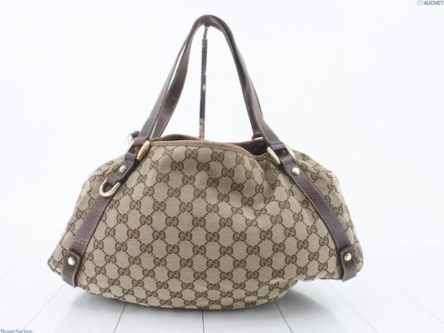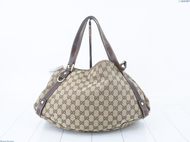 GGキャンバス レザー ハンドバッグ ベージュ系