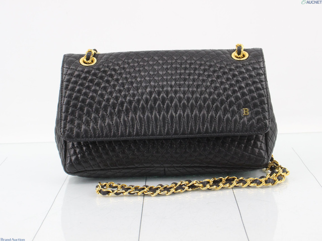 バリー チェーンショルダーバッグ キルティングレザー 黒