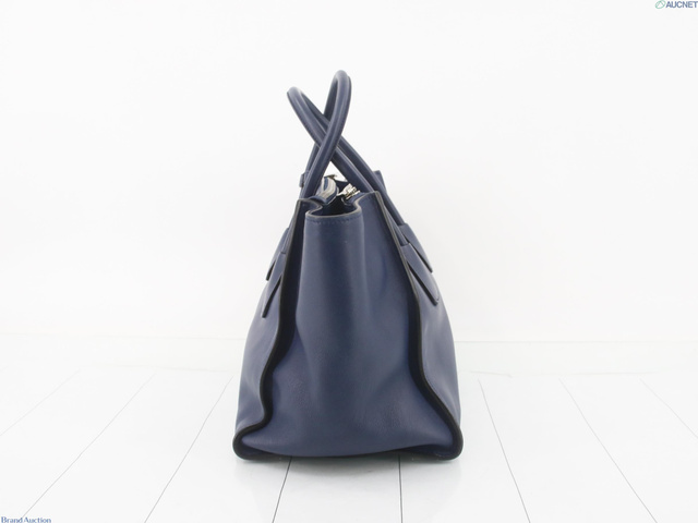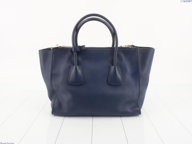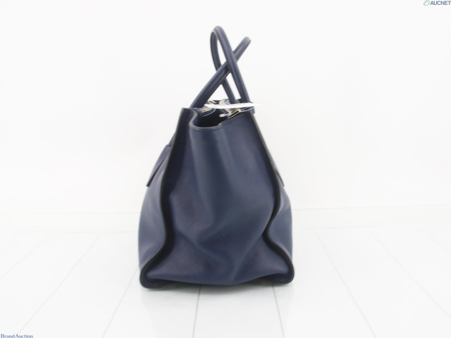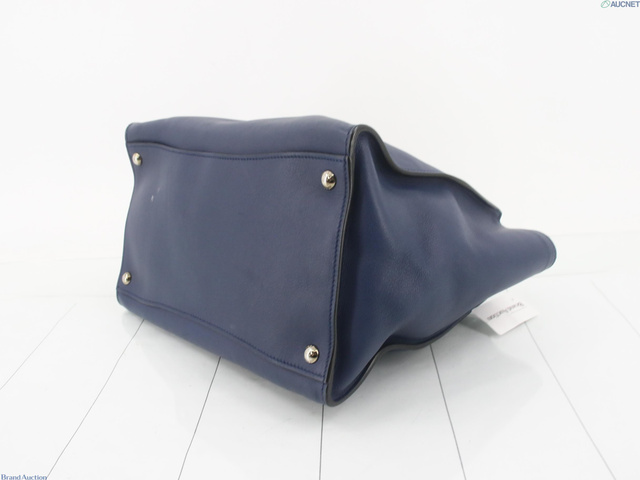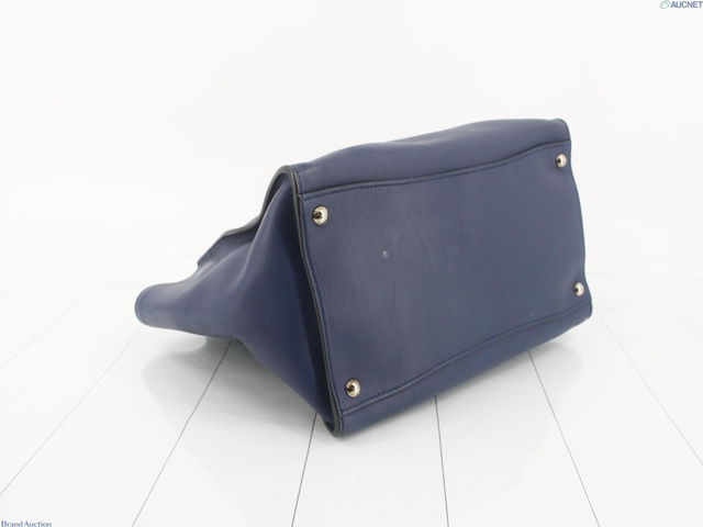 レザー 三角プレート トートバッグ ネイビー系