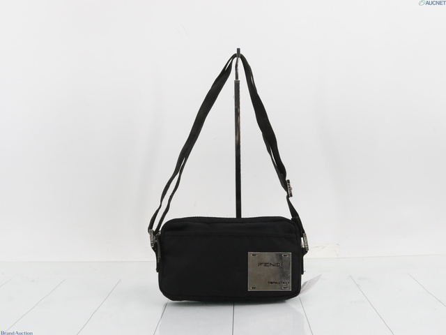 ロゴプレート ショルダーバッグ ナイロン ブラック