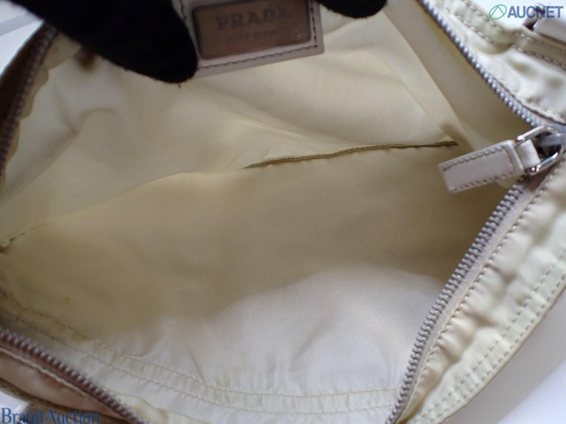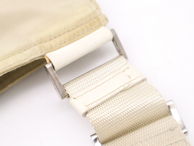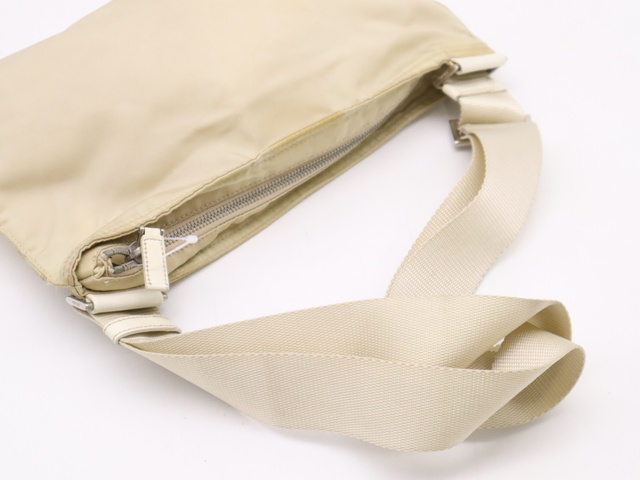 ナイロン 三角ロゴ ショルダーバッグ ベージュ SV金具