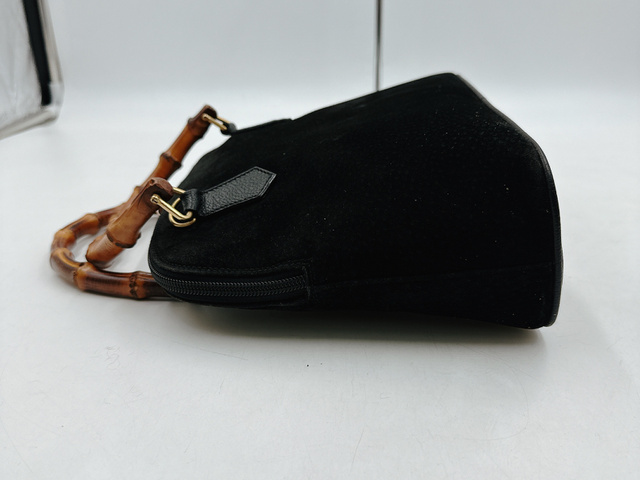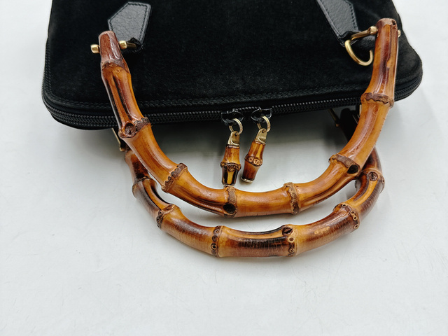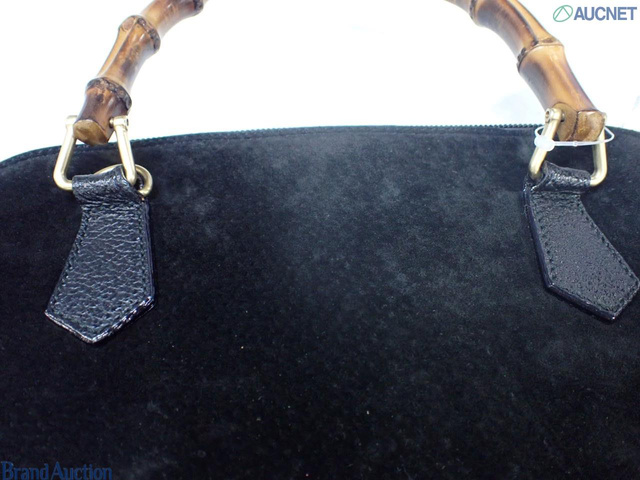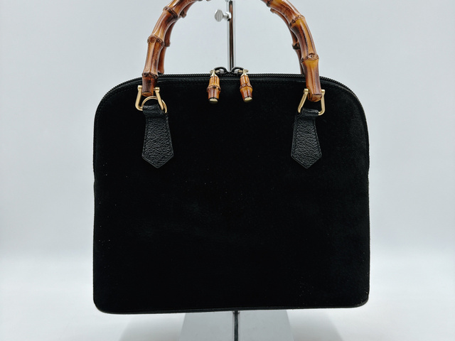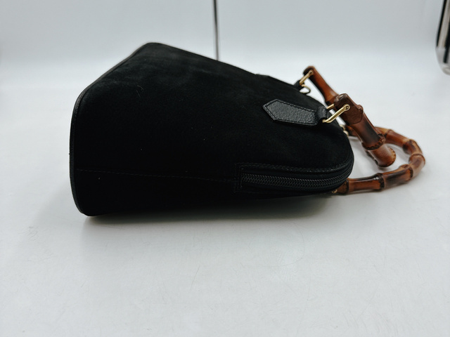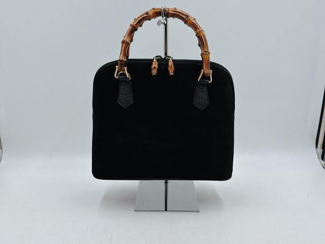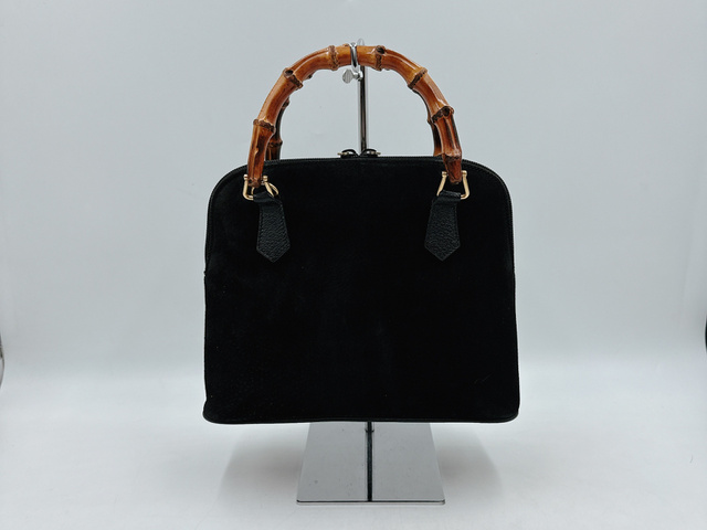 グッチ バンブー スエード レザー ハンドバッグ ブラック