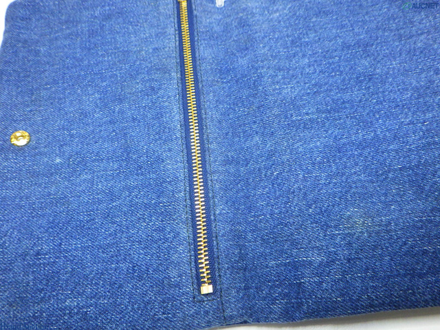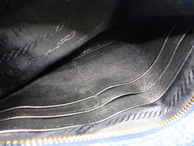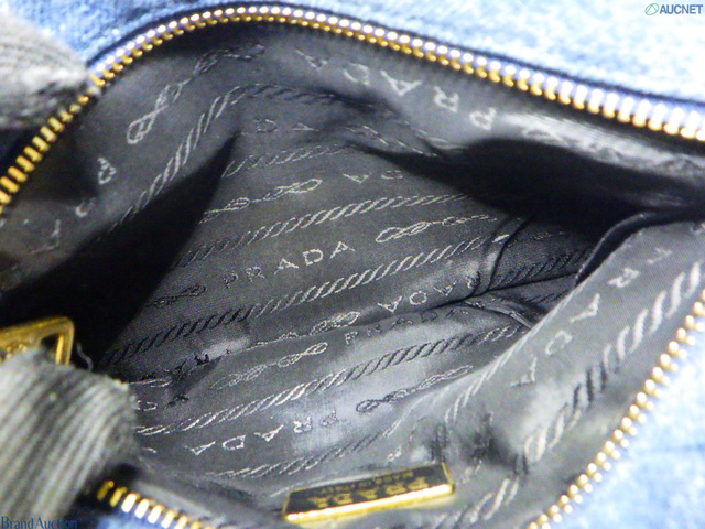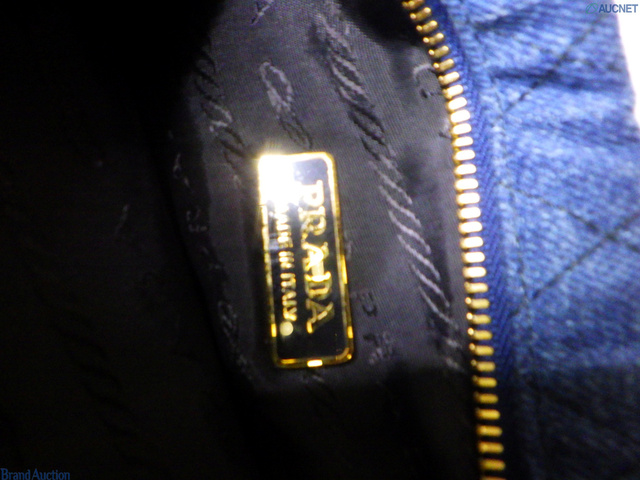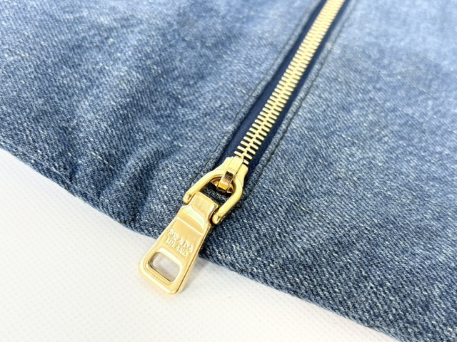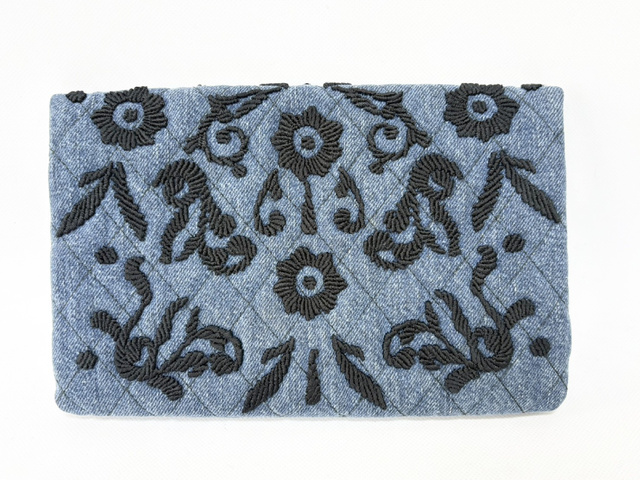 プラダ コットンデニム フラワー刺繍 キルティング ポーチ インディゴ×ブラック