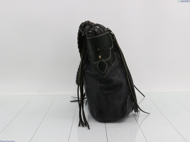 ワンショルダーバッグ レザー ブラック フリンジ