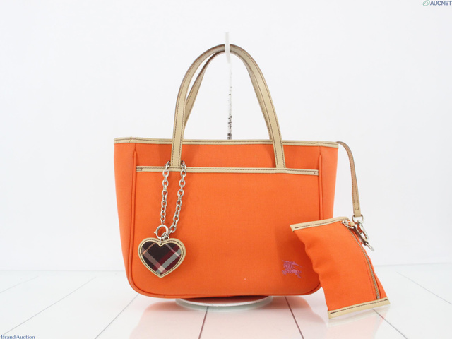 バーバリー ブルーレーベル ハンドバッグ オレンジ ホースロゴ キャンバス