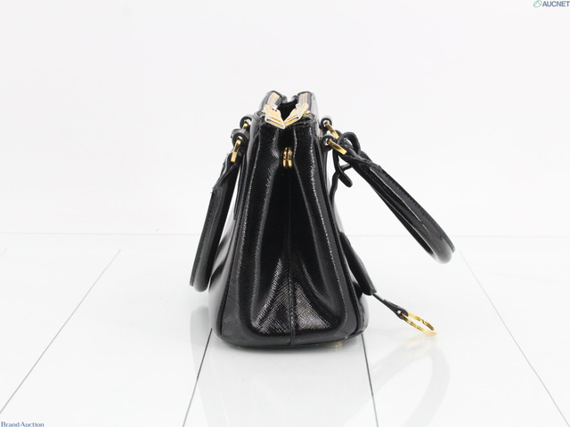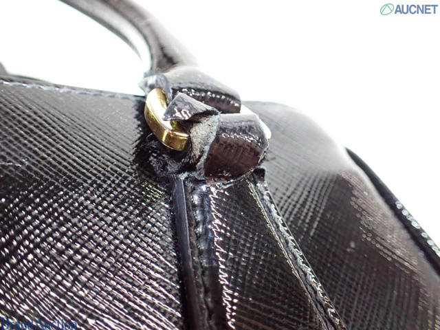 ガレリア エナメル 三角プレート ハンドバッグ ブラック
