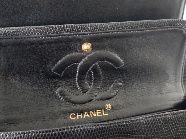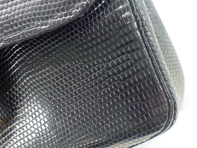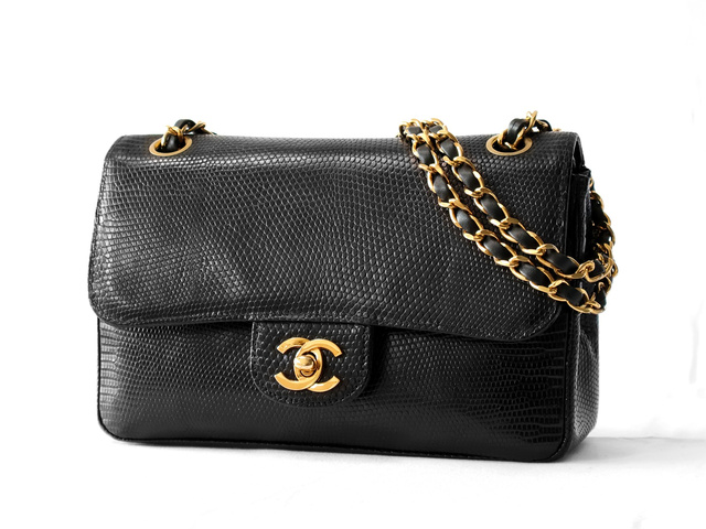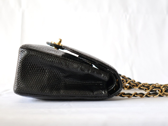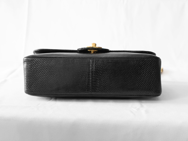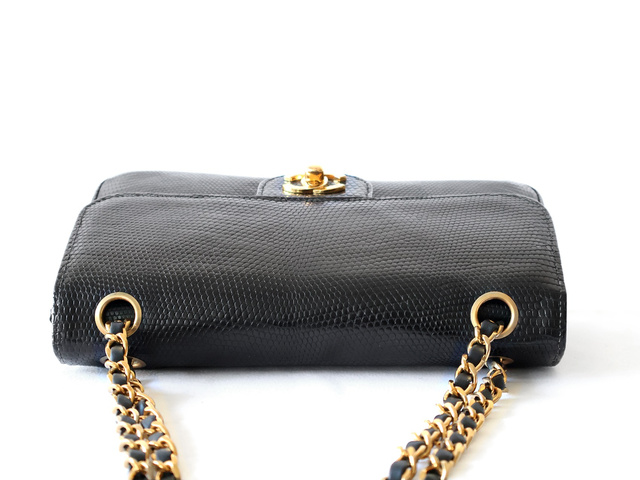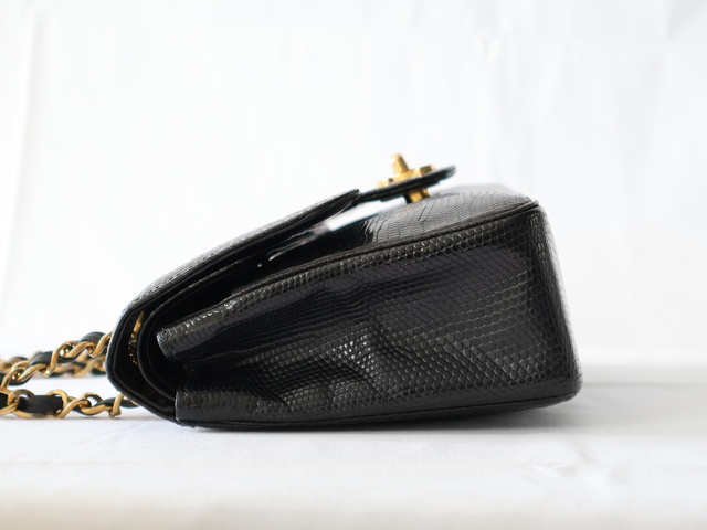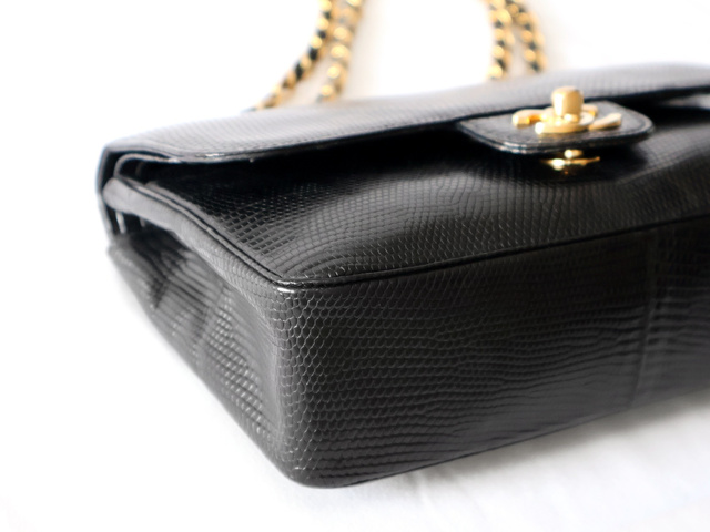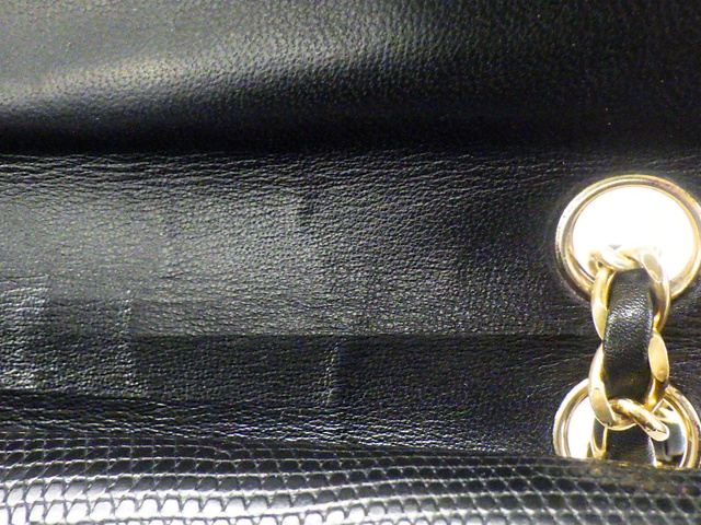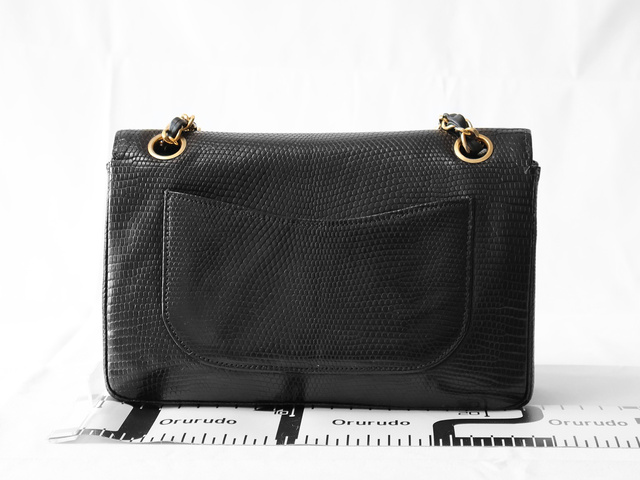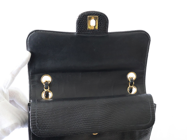 マトラッセ 25 リザード Wフラップ Wチェーンショルダー ブラック