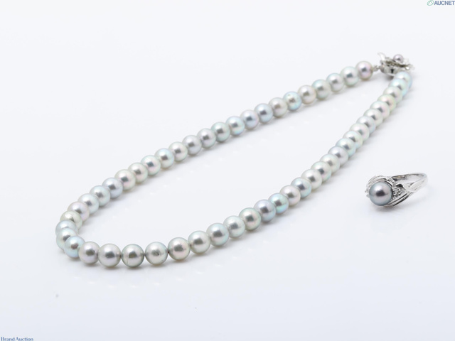 着色パールネックレス 指輪 まとめ シルバー留め具 模造石(CZ)
