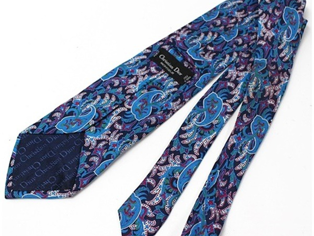 クリスチャンディオール シルク ネクタイ ペイズリー柄 ライトブルー