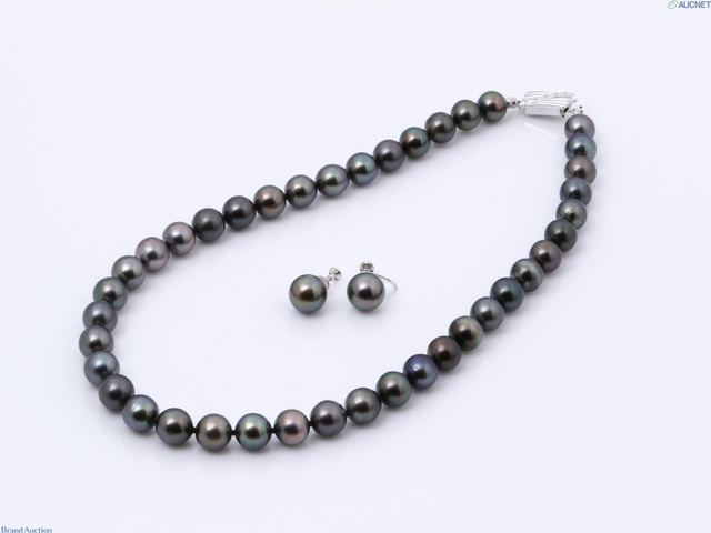 黒蝶真珠 AU約32%ネックレス、SVイヤリングセット 42cm 留め具ダイヤ