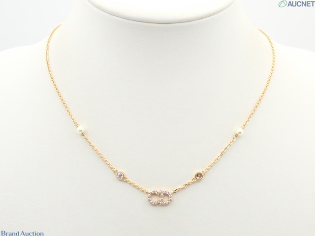 CDロゴ ラインストーン パール ネックレス
