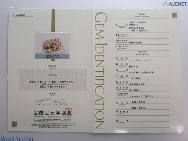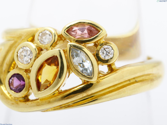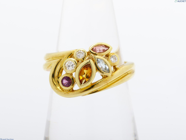 Mino Veloci K18YG リング 約5.7g シトリン ブルートパーズ