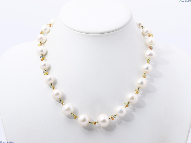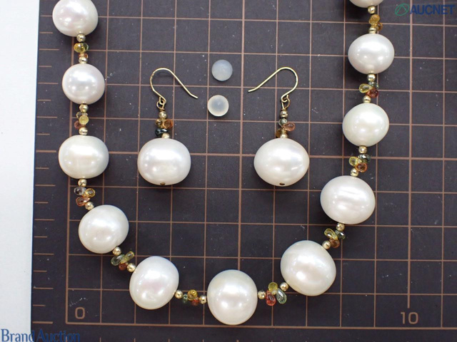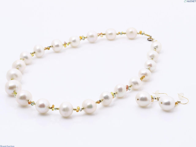 K18 淡水パール サファイア ネックレス/イヤリング