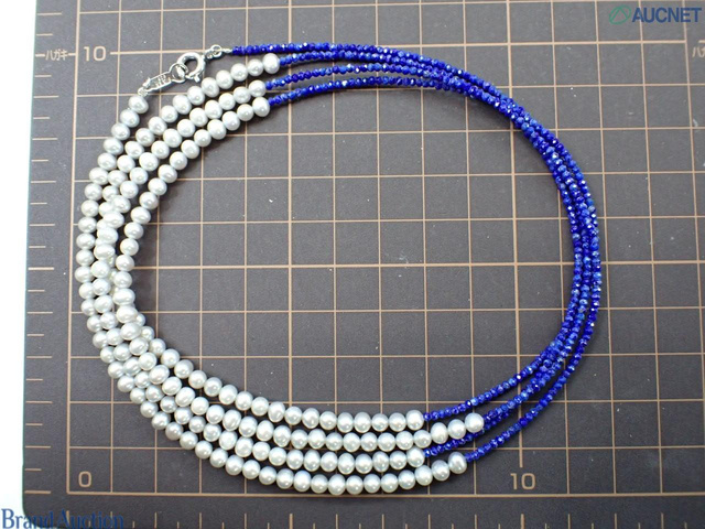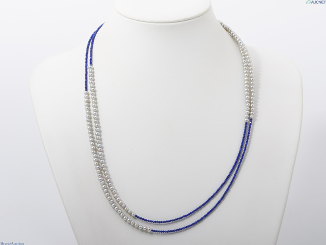 SV ラピスラズリ/淡水パール ロングネックレス 約120cm