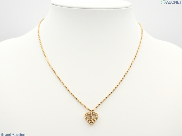 ハート ラインストーン ロゴ ゴールド ネックレス クリスチャンディオール