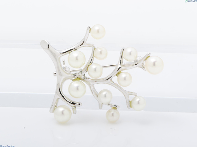 幸福の木 ブローチ アコヤパール SV 直径約3.7mmー5.2mm