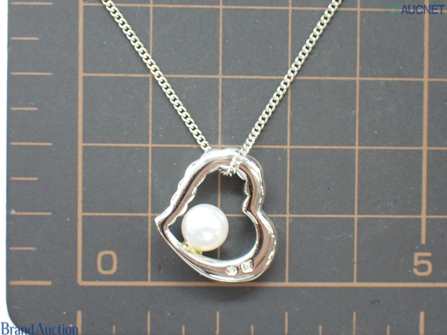 パール6.6mm SV ハート ネックレス トップ チェーン約41cm
