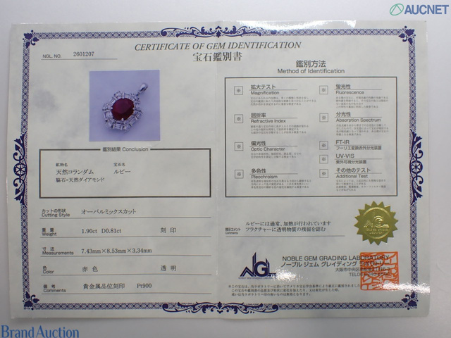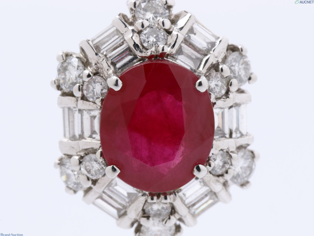 天然ルビー Pt900トップ R1.9ct D0.81ct 4g