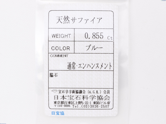 サファイヤ 0.855ct