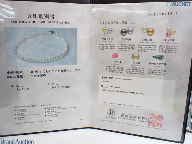 アコヤパール 真科研 鑑別書 ネックレス SV 46cm