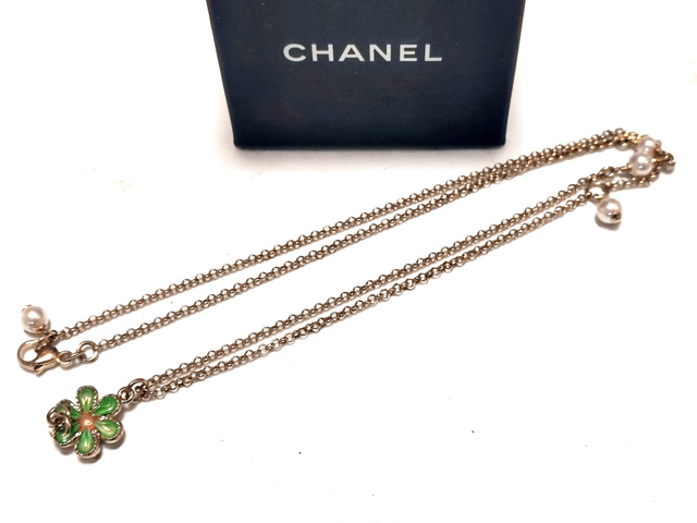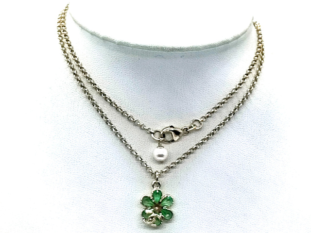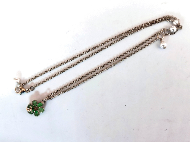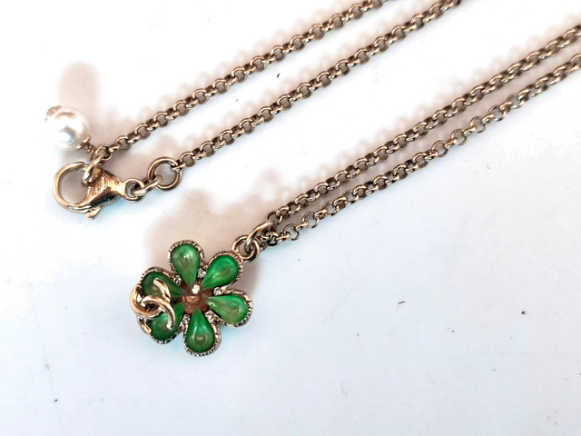 ココマーク グリーンストーン フラワー パール ネックレス C20C
