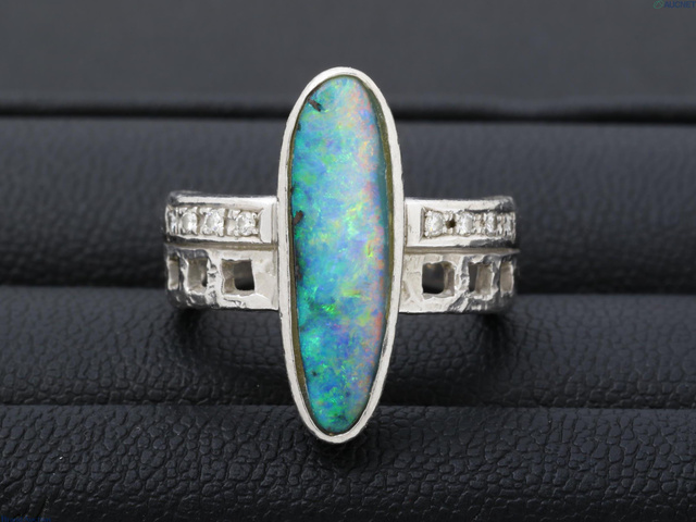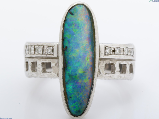 ボルダーオパール Pt900 D0.08ct 13.9g ダイヤリング