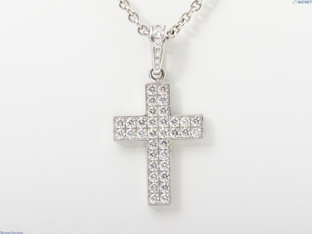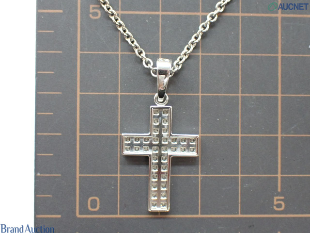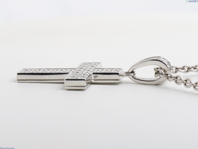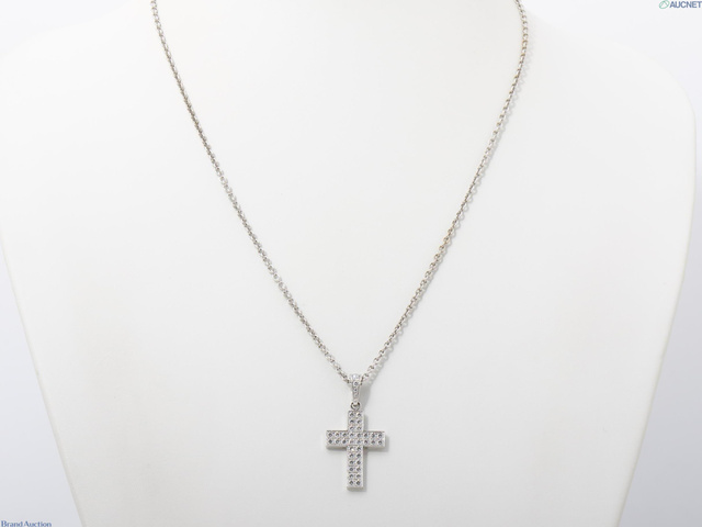 750WG クロア アンモア クロス ダイヤ ペンダントネックレス