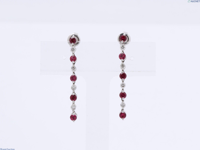 ピアス K18WG ルビー0.57×2 ダイヤ0.18×2 4.5g