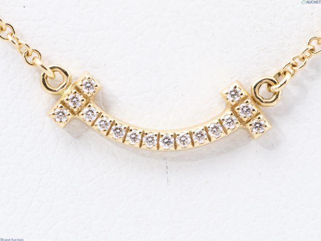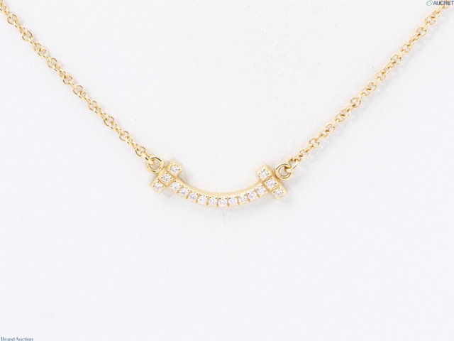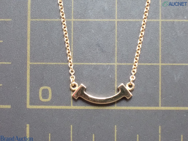 ネックレス 750PG 2.4g Tスマイル マイクロ ダイヤ 首周り約46cm