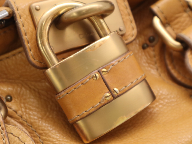 レザーパディントン ハンドバッグ オレンジ SV金具 GD金具 カデナ・キー付