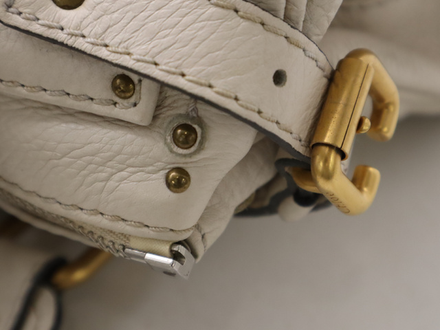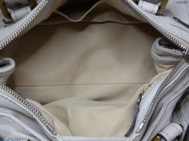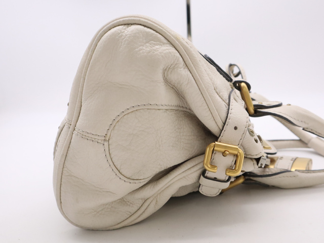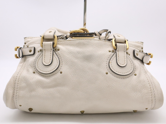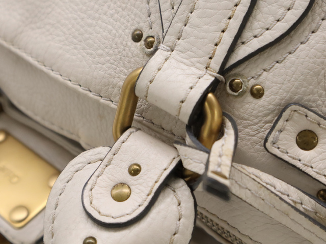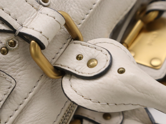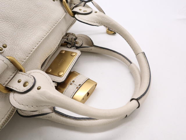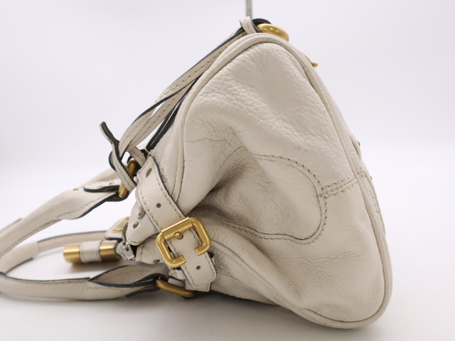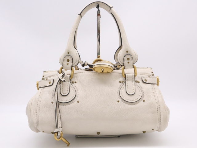 レザーパディントン ハンドバッグ ホワイト GD金具 SV金具 カデナ・キー付