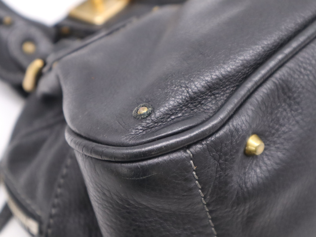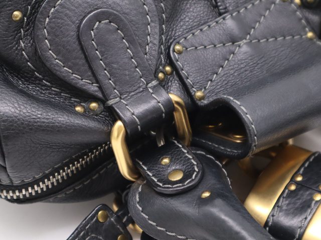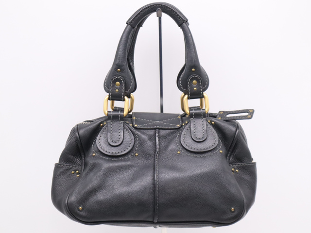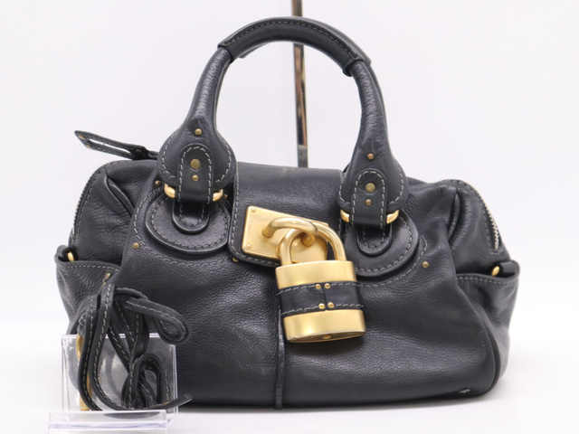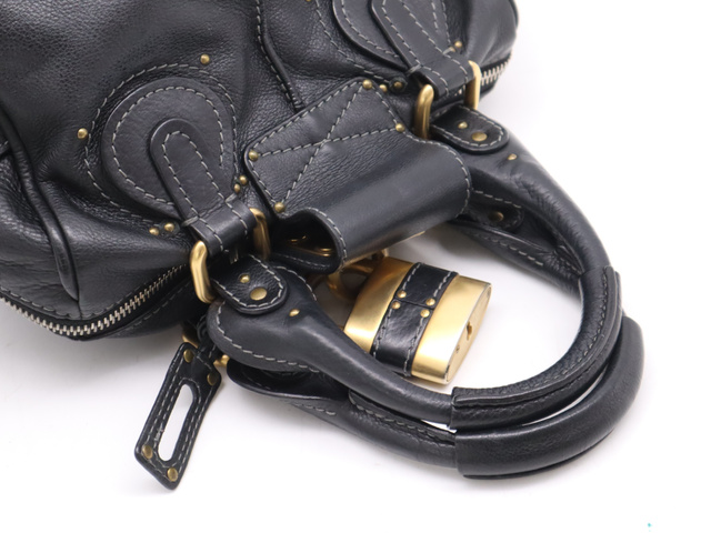 レザーパディントン ハンドバッグ ブラック GD金具 SV金具 カデナ・キー付